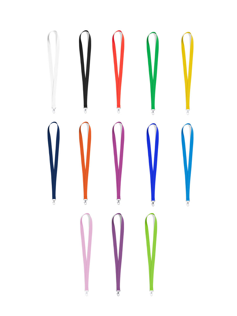Lanyard personalizable de poliéster. Con gancho metálico giratorio, personalizable, color blanco especial para la sublimación. Varios colores.