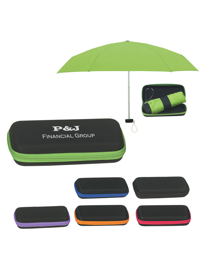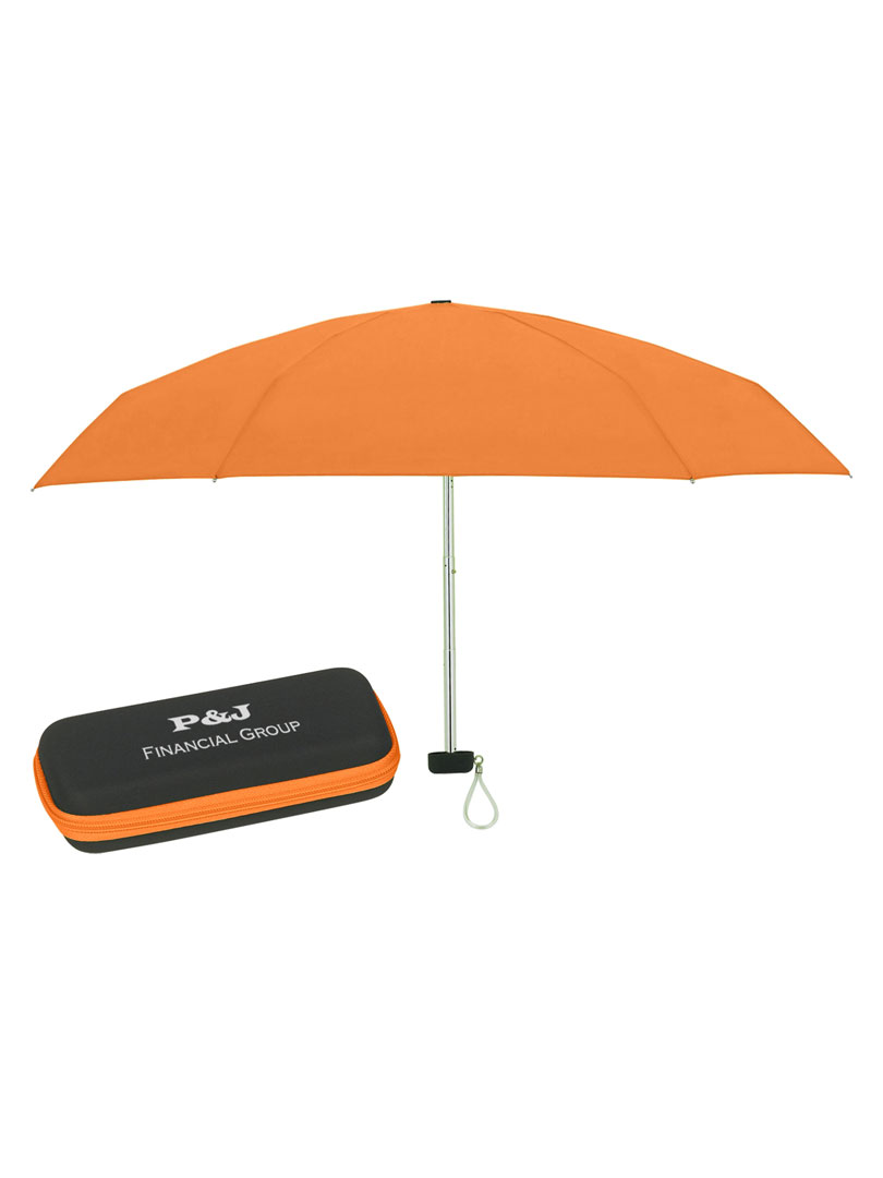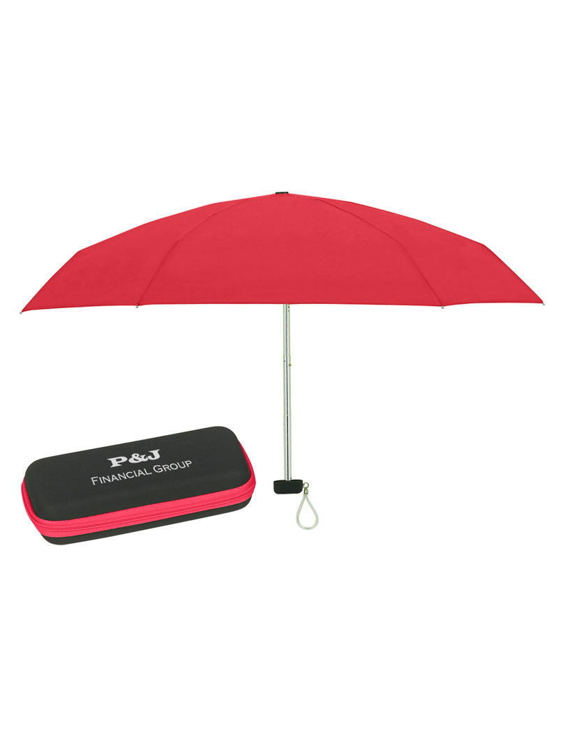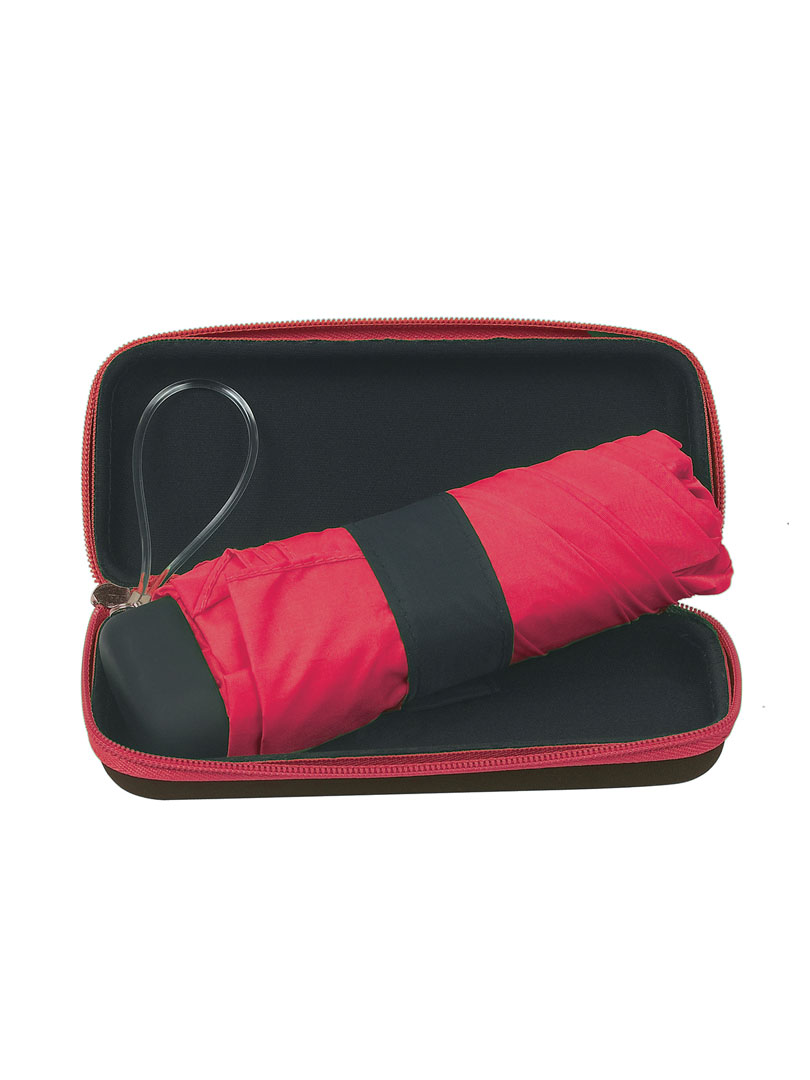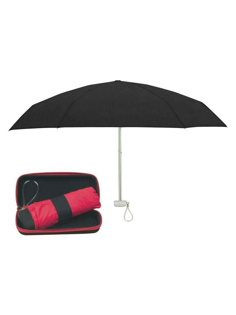 Paraguas plegable telescópico de apertura manual, con estructura de aluminio, incluye estuche con cierre de zipper y correa para la muñeca para un fácil transporte. Cuando el paraguas está plegado mide 15 cm. Tamaño compacto.