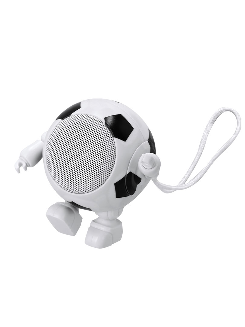 Parlante Bluetooth en diseño de balón de futbol bailarín, con conexión Bluetooth® 5.3 y 3W de potencia, y batería de 500 mAh a través de cable USB-Tipo C incluido. Incluye práctica y divertida asa de transporte, para ir con la música a todas partes.