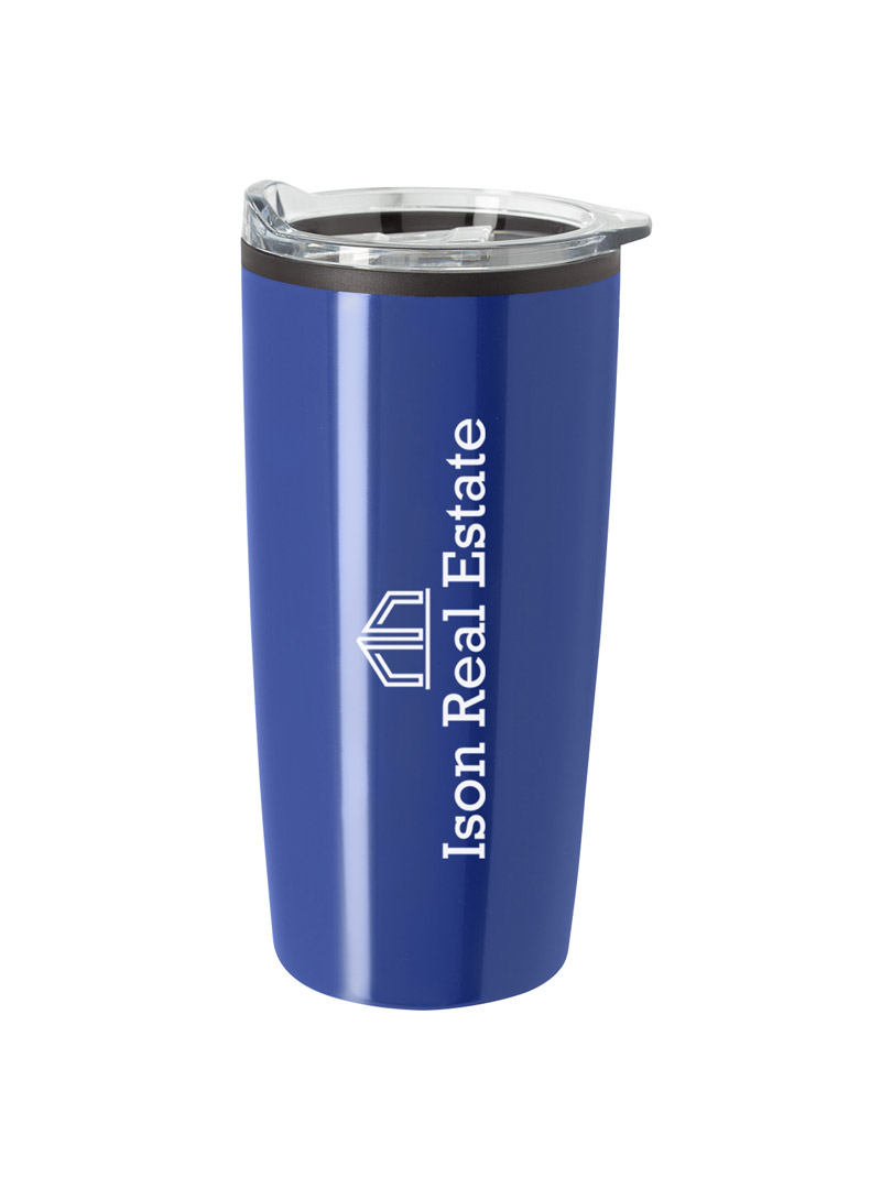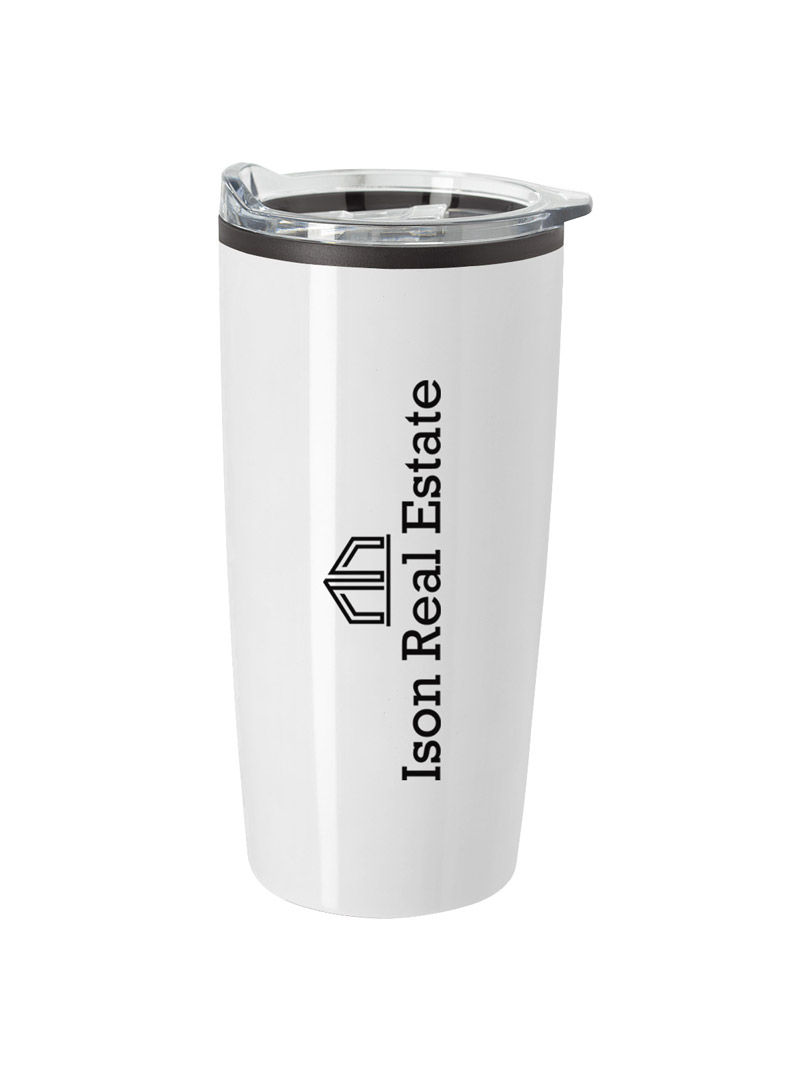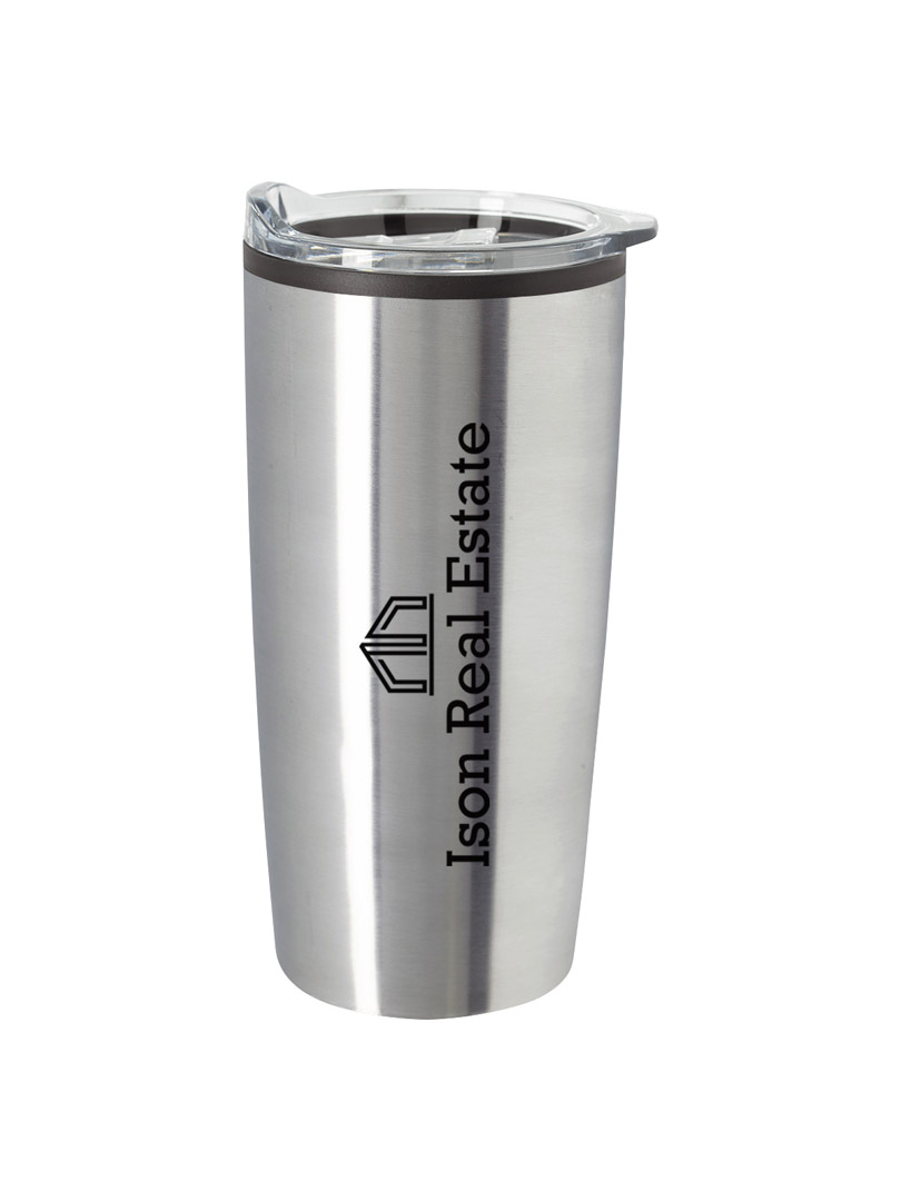 Vaso promocional térmico con construcción de doble pared, para aislar la temperatura de los líquidos. Tapa a presión resistente a derrames. Cumple con los requisitos de la FDA y está libre de BPA.